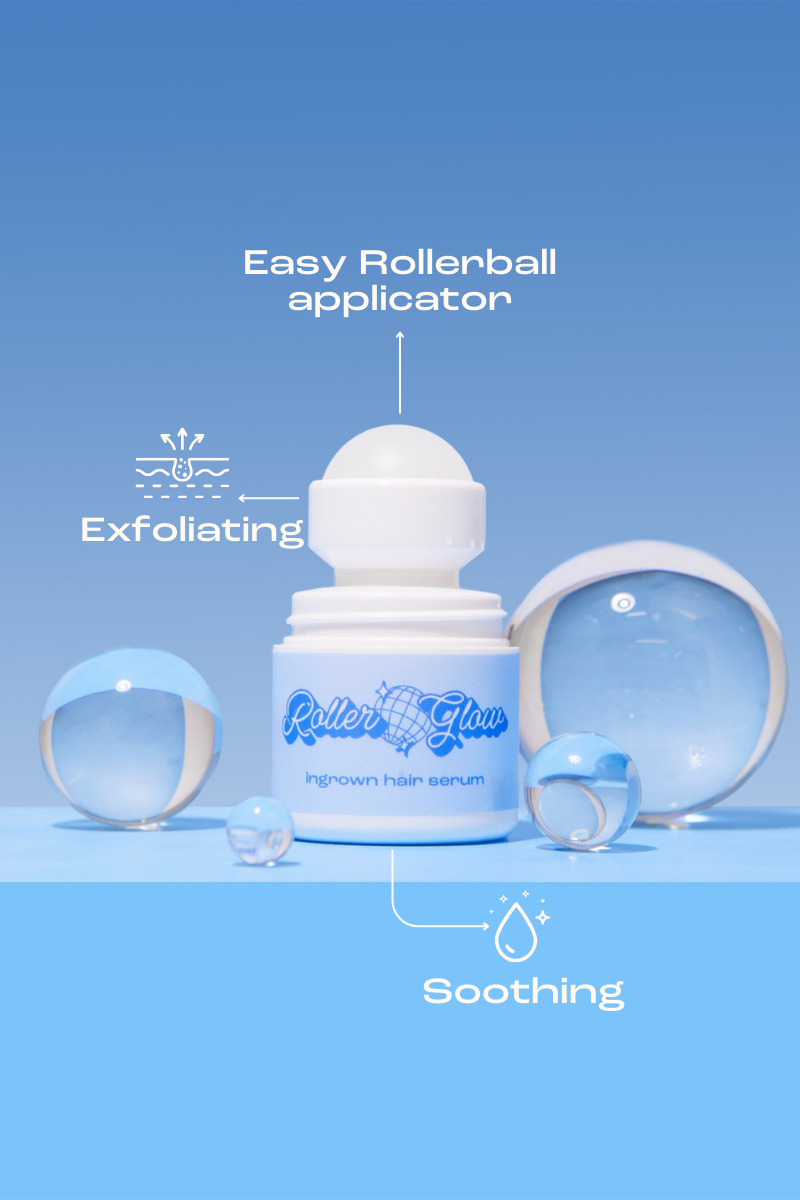 Meet Roller Glow—your skin’s new post-shave, post-wax, post-anything BFF. This soothing ingrown hair toner is packed with skin-loving ingredients to calm irritation, prevent pesky ingrowns, and keep your skin silky-smooth. With every roll, it hydrates, exfoliates, and restores, so you can say goodbye to bumps and hello to effortlessly radiant skin.